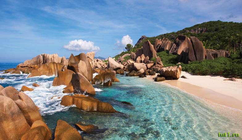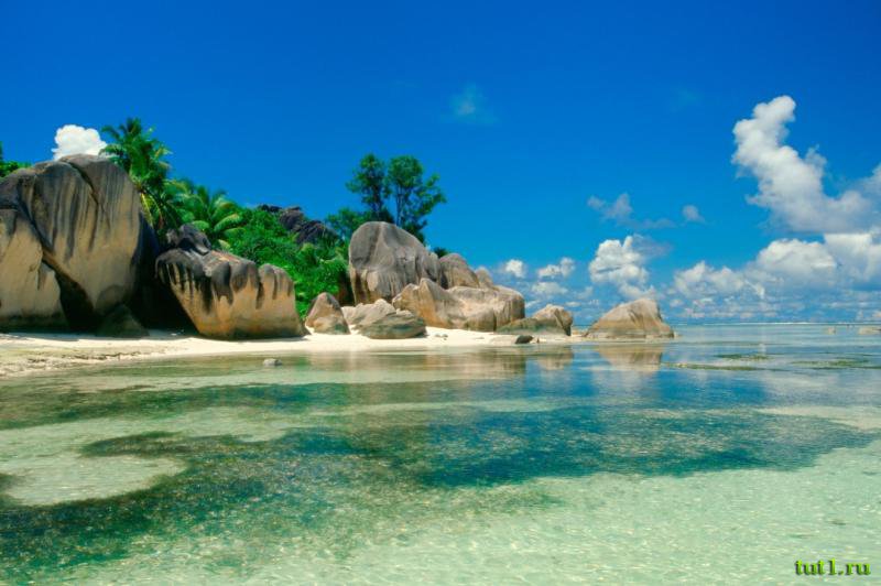 Сейшельские острова находятся напротив Африки и севернее Мадагаскара. В состав Сейшел входит 115 островов, среди которых 33 обитаемых. Сейшелы — это огромное буйство красок: всех оттенков зеленой растительности, бирюзового моря и белоснежных пляжей. Всю эту красоту включая, провисающие над водой, пальмы можно встретить на пляжах, причем для этого не нужно знать какой-то особенный пляж, ведь такие пляжи на Сейшелах везде. Даже необорудованные пляжи, которые можно увидеть проезжая куда-то мимо, поражают своей восхитительной красотой. Особенностью сейшельских пляжей является то, что на них расположены гранитные валуны, что выглядит очень красиво и создает потрясающие пейзажи. Более того, из них иногда прорастают пальмы, буйная зелень которых, придает этим валунам величественности и красоты.