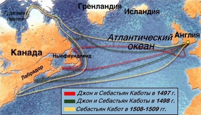 В Англию Джованни Кабото переехал со всей семьей в 1495 году, когда вести об открытии новых земель на Западе разнеслись по всему миру. Несмотря на то, что до выхода труда Николая Коперника оставалось еще добрых полвека, о том, что наша Земля имеет форму шара, догадывались многие, а искушенные купцы Генуи и Венеции так и вовсе были в этом убеждены. Рассчитав, что если восточные купцы привозили товары с северо-востока, то европейцы вполне могут искать эти самые страны на северо-западе, он и предложил свои услуги Англии. Поиск новых земель и торговых путей интересовал Генриха VII, он откровенно завидовал Испании и Португалии, мечтал о таких же открытиях, расширивших королевские земли. Но английские купцы традиционно шли по проверенным маршрутам, не желая рисковать деньгами. Джон Кабот, именно так теперь его называли (и под таким именем он и вошел в историю), предложил маршрут поисков новых земель севернее, чем это делал Христофор Колумб. Если Колумб открыл "путь в Индию", то Кабот предлагал искать Китай. На предложение откликнулись торговцы из Бристоля. Главный порт западного побережья Англии был полон купцов в том числе и итальянских. Они-то и поверили в успех затеи земляка. Джон Кабот был представлен королю, который даровал ему грамоту, подтверждающую права на плавание во всех морях западного и северного направлений под английским флагом. Грамота давала права, но не давала средств. Король и не собирался финансировать рискованное мероприятие. С финансами помогли земляки.