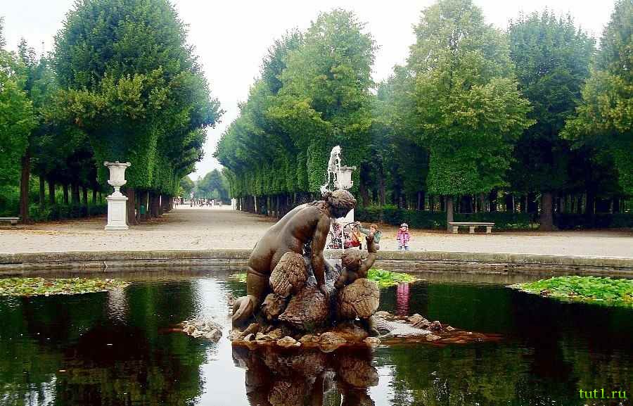 Во Дворце Шенбрунн есть ботанический и апельсиновый сады, а так же зоопарк, который очень любят дети. В парке, площадью 1 квадратный километр, есть на что посмотреть. Здесь Вы найдете 40 мраморных статуй и несколько фонтанов. Конечно, с парка виден и Дворец Шенбрунн. Главные врата ведут в сад с двумя фонтанами. Один из них символизирует вечные провинции, а второй — великие реки.