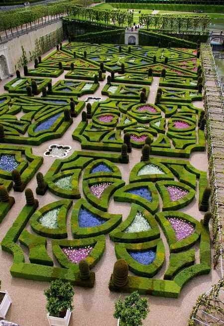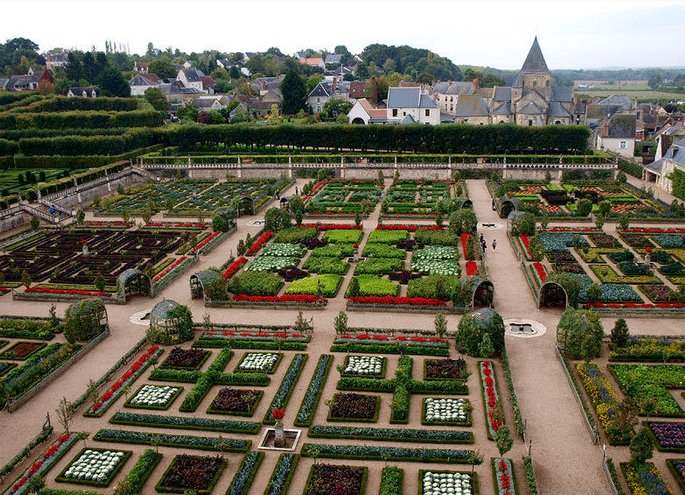 Еще со времен Средневековья сохранилась система обороны ров-вал (так всегда строили здания на открытой местности в те времена). Но основной достопримечательностью замка является вовсе не ров, который окружает замок с трех сторон. А уникальный трехуровневый сад, который идет с дворцом единым ансамблем. Именно этот сад он делает замок Вилландри известным на весь мир. Идею сада подсмотрел у итальянцев автор проекта замка — Ле Бретон. Но он спроектировал свой сад совсем по другому — сделал его большим по размеру, так что несколько скрадываются истинные размеры здания. И для садов такого размера становятся ненужными ограды, появляется возможность ходить по всему саду.
