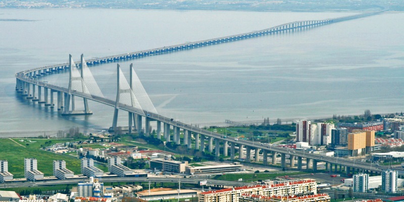 В Португалии, недалеко от Лиссабона, находится мост, который признали самым длинным на территории Европы (17,2 км). Он органично вписался в природный ландшафт, а его название — Васко да Гама.