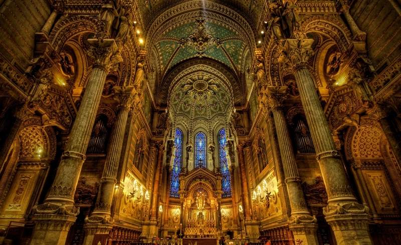 В 1643-м году жители Лиона выбрали Деву Марию своей святой покровительницей. В 1896-м году они подтвердили свой выбор на деле, построив базилику Нотр-Дам-де-Фурвьер. Эклектичный облик этой церкви с четырьмя крупными башнями, далеко не все считают совершенным. Кажется, что в нём переплелись элементы все существующих архитектурных стилей: неоготического, символизма, неоклассического, античности и других. Но не смотря ни на что, Нотр-Дам-де-Фурвьер является одной из главных достопримечательностей Лиона. Базилика является ярчайшим примером эклектики (смешения различных стилей) XIX века, аскетическая внешняя часть и богато украшенная внутренняя часть. Кажется, будто строители базилики не знали, что им делать с огромным количеством золота, потому что от пола до потолка в храме видны позолоченные украшения внутри здания. Довольно неприметный внешний вид базилики обманывает посетителей, так как внутреннее убранство крайне богато и пышно. Помимо нескольких мозаик и витражей, в базилике находится богатая коллекция византийского искусства XIX века. Так же стоит обратить внимание на склеп святого Иосифа.