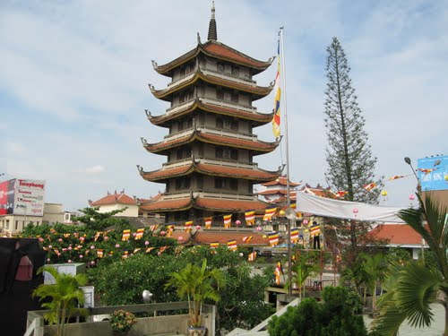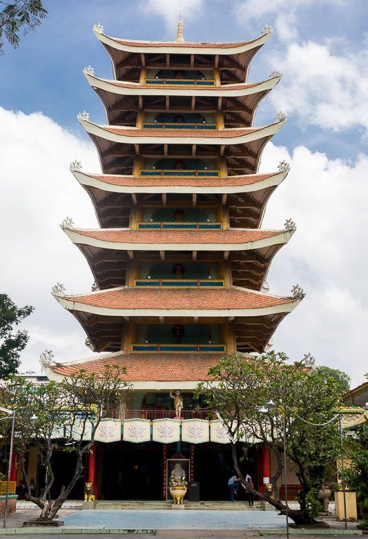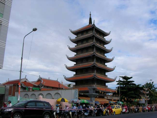 Пагода Винь Нгием — это семиярусная башня, выстроенная в классическом стиле с добавлением элементов японской архитектуры. Строилась она семь лет (с 1964-го по 1971-й год). Довольно большая территория, занимаемая пагодой, полностью окружена стеной. Сооружение состоит из нескольких строений — молельни, 40-метровой башни с колоколом из бронзы, построек вокруг озера, башни, предназначенной для урн с прахом. Эта пагода — место молитв буддистов.