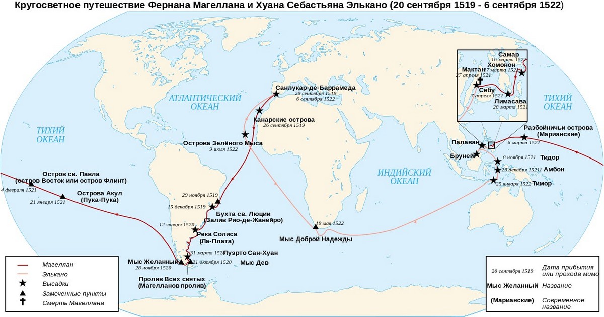 Путь Магеллана на карте