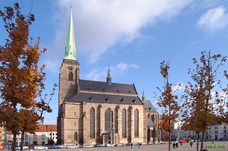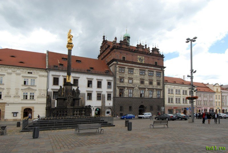 Стоит уделить внимание Площади Республики, длина которой составляет более 190 метров, а ширина почти 140 метров. На площади возвышается Собор Святого Варфоломея, построенный в готическом стиле, с самой высокой башней города (высота башни более 100 метров). Недалеко от собора расположена ратуша, возведенная еще в XVI столетии в стиле ренессанса. Левее ратуши находится еще одна постройка в данном стиле — Императорский дом Рудольфа II, который жил здесь во время приездов в Пльзень. Также на Площади Республики стоит так называемый чумной столб, который напоминает жителям города о Деве Марии, избавившей Пльзень от эпидемии чумы. Туристы могут полюбоваться старинными фонтанами, установлены в каждом из углов площади.