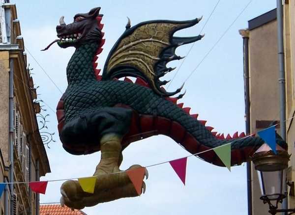 Другой епископ — преподобный Климент фактически спас город. В III веке эти места терроризировал дракон Граулли. Обосновался он в руинах римского амфитеатра. Днём Граулли лениво нежился на, прогретых солнцем, развалинах, а по вечерам развлекался охотой на горожан. Причём, поедал он ежедневно не меньше 12-ти человек. Разобраться с супостатом из самого Рима отправили епископа Климента. Старожилы утверждают, что Климент сломил волю супостата исключительно силой своей веры. Он просто приблизился к дракону, неотрывно глядя в его бесстыжие глаза. Затем накинул Граулли на шею, словно удавку, свой епископский шар и повел чудище к реке, где тот, на одном из островков, "провалился сквозь землю". В связи с победой над драконом каждый год на улицах города проводились народные гуляния с последующим сжиганием чучела дракона. В наши дни дракон Граулли является символом города Мец.