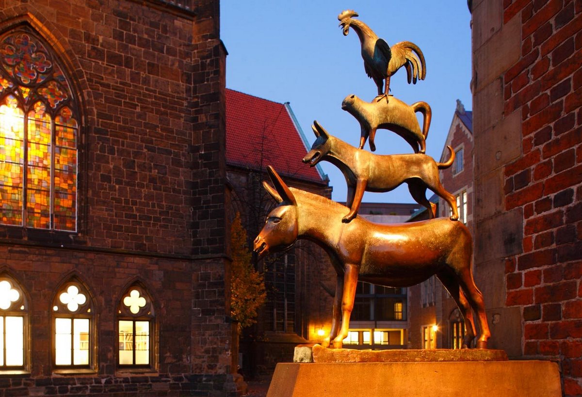 1. Обязательно стоит загадать желание у статуи Бременских музыкантов на рыночной площади и потереть ногу осла, а если дотянетесь – то собаки, кота или даже петуха. Наилучшим квестом станет поиск всех изображений знаменитой звериной четверки, которых в Бремене великое множество.