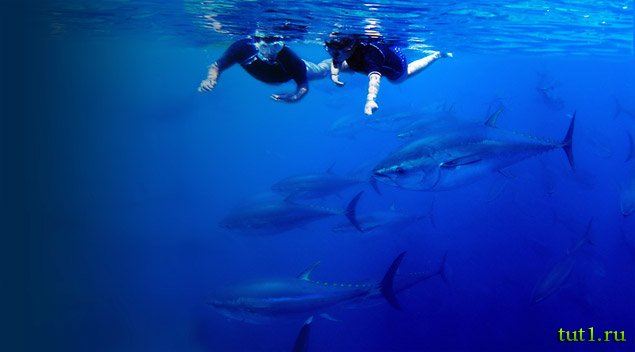 Заботясь о том, чтобы время, которое туристы проводят на побережье, не казалось отдыхающим скучным и однообразным, местные придумщики изобретают десятки способов как его разнообразить. Например, желающим предлагается купание с тунцом. Для свидания с тунцом надо приплыть к специальному бассейну, расположенному в нескольких километрах от берега. Существует даже специальная техника плаванья с тунцом: рыбина эта даром что крупная, но уж очень пугливая, и поэтому чтобы не вогнать тунца в стресс и напрочь не отбить у него всякую охоту общаться, желательно избегать в воде резких движений, а лучше вообще застыть не бултыхаясь, мол, Вы — медуза.