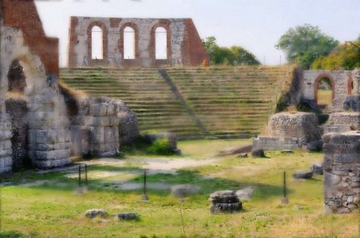 Город Губбио. Одной из главных достопримечательностей города является амфитеатр римской эпохи. То, что амфитеатр сохранился с незапамятных времен — доставляет такую радость и гордость жителям города Губбио, будто этот амфитеатр не древние римляне построили, а они (местные жители), своими руками. Нынче развалины амфитеатра используются для проведения симфонических концертов и театральных постановок.