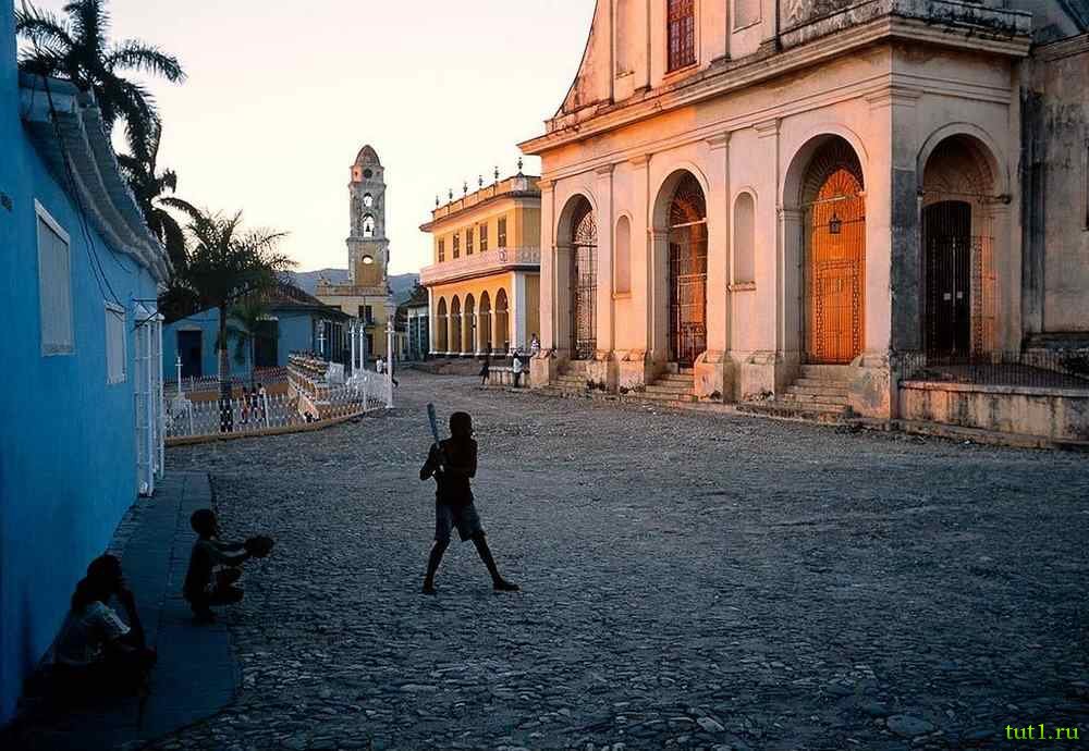 Город Тринидад основал Диего Веласкес в 1513-м году. Сейчас город имеет статус официального архиепископства, он не изменился со времен испанского правления. Когда-то он был важным центром, где собирались крупнейшие землевладельцы. Город Тринидад, находящийся в центре острова Куба, процветал за счет торговли рабами и сахарным тростником. Пока сахарный рынок не переместился на запад — в Гавану. Кажется, XX век никак не отразился на жизни города — повсюду до сих пор стоят трехсотлетние дома и дворцы сахарных и табачных баронов. Только дети на улице сохранили некий "сувенир" времен более поздней, американской, оккупации — бейсбол. Почти все здесь играют в домино, особенно, кубинцы старше сорока лет. Это приятное занятие во время сиесты (дневного отдыха), когда закрыты все магазины.