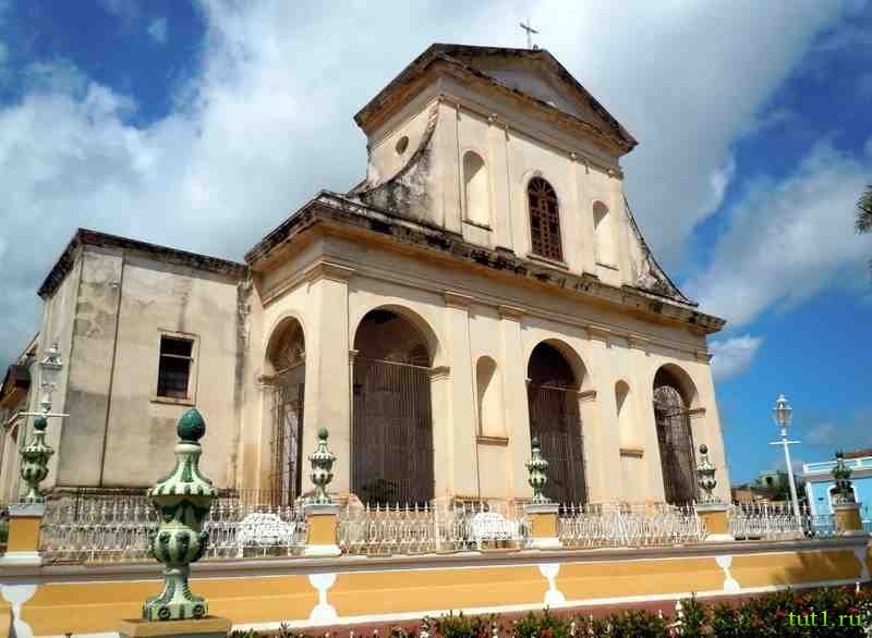 На эту площадь смотрит фасад главной приходской церкви Святой Троицы — это самый большой храм Кубы, который обладает потрясающей акустикой.