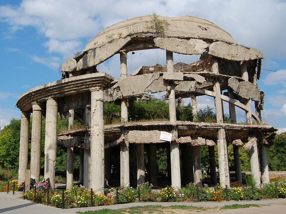 На севере Воронежа можно увидеть памятник Великой Отечественной Войне – это ротонда, которая осталась от некогда большой областной клинической больницы. Все что осталось от огромной больницы – это железобетонный каркас, бывший когда-то приемным отделением.