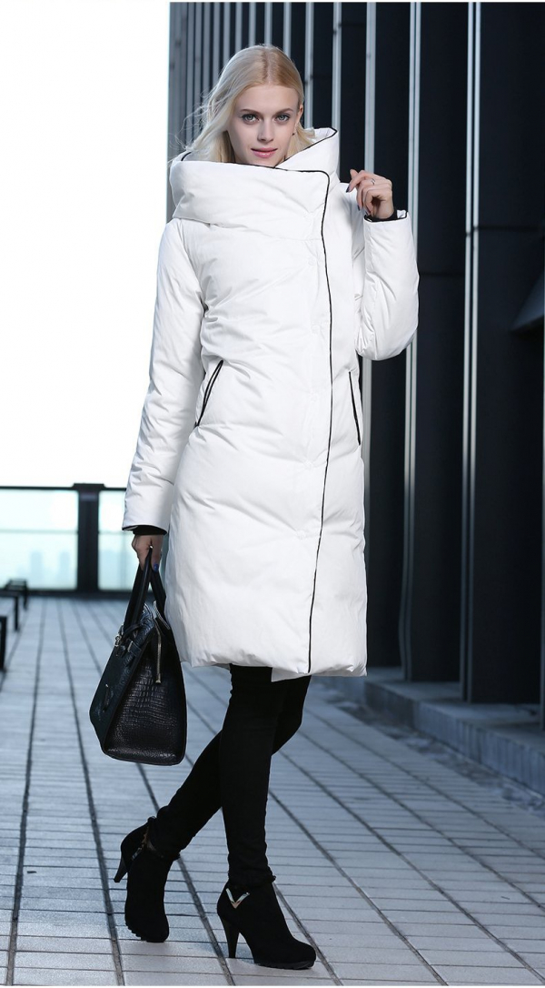 Удлиненная белая куртка. В такой куртке вы будете этакой Снегурочкой, ваш образ точно не останется незамеченным. К тому же удлиненная куртка способна подарить вам больше тепла, а значит подойдет для прогулок у моря или в ветреную погоду. Удлиненная куртка отлично подойдет девушкам с типом фигуры яблоко, особенно если у куртки есть пояс. Таким образом, вы сможете создать ту самую фигуру мечты – песочные часы.