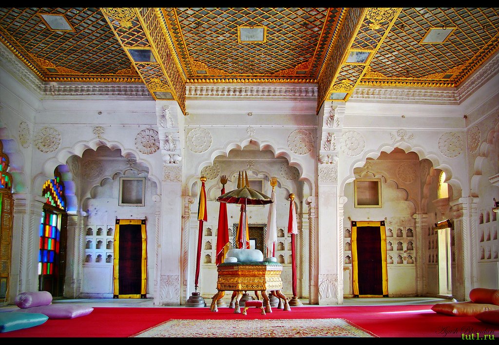 Цветочный Дворец — самый прекрасный и драгоценный камень в короне Мехрангарха. Здесь танцовщицы ублажали взоры представителей королевского двора. Они развлекали успешных правителей, которых больше занимали женские танцы, чем солдатская муштра. На потолке 24 карата золота. Позолотой и растительными красками раджи ратхара разрисовали генеалогическое дерево, начиная от золотого века монархии. Дворец получил своё название благодаря цветочной тематике в украшениях — стеклянная мозаика повторяет узор лотоса, в Индии это священный цветок веры.