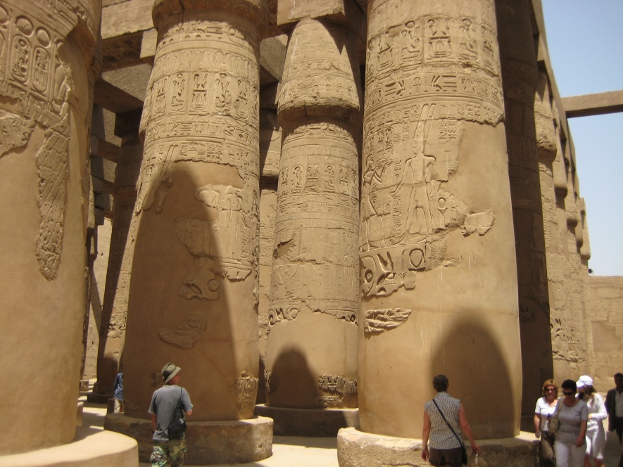 Двор Аменхотепа III — девятнадцатиметровые колонны с изображениями празднеств в честь Амона.