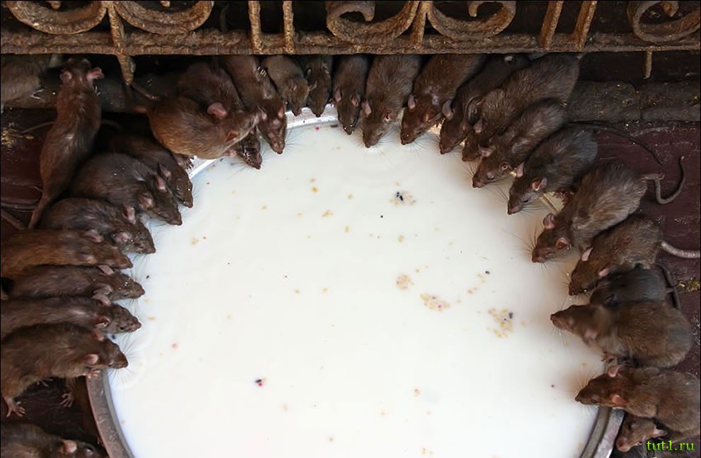 Храм, посвященный богине Карни Мата ― уникальный храм Индии. В этом храме обитают 20 000 священных крыс. В этих местах когда-то жила богиня Карни Мата. В XV веке ужасная лихорадка истребила всех детей. Родители обратились к Карни Мата с просьбой оживить ребятишек. Богиня согласилась, но условия сделки оказались очень жестокими ― дети перевоплотятся в грызунов. "Ну, не в тараканов же, в конце концов" ― подумали родители и согласились.