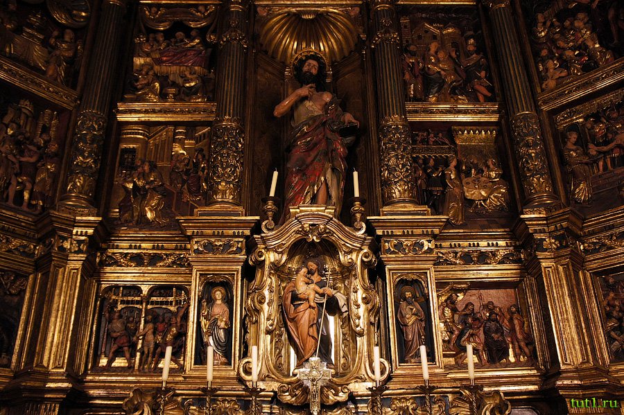 В монастырь можно попасть через мраморные ворота XI века. Внутренний дворик, наполненный пальмами и вечно зелёными растениями, окружен арками. В этом дворике живут белые гуси, которые символизируют чистоту святой Евлалии. Павильон украшен средневековой плиткой, мраморными статуями и фонтанами. Отсюда видны капеллы за железными решетками.