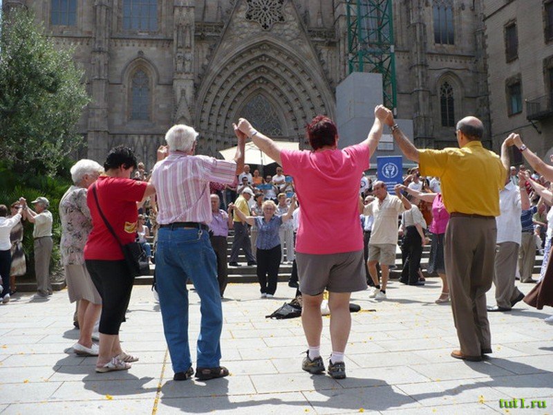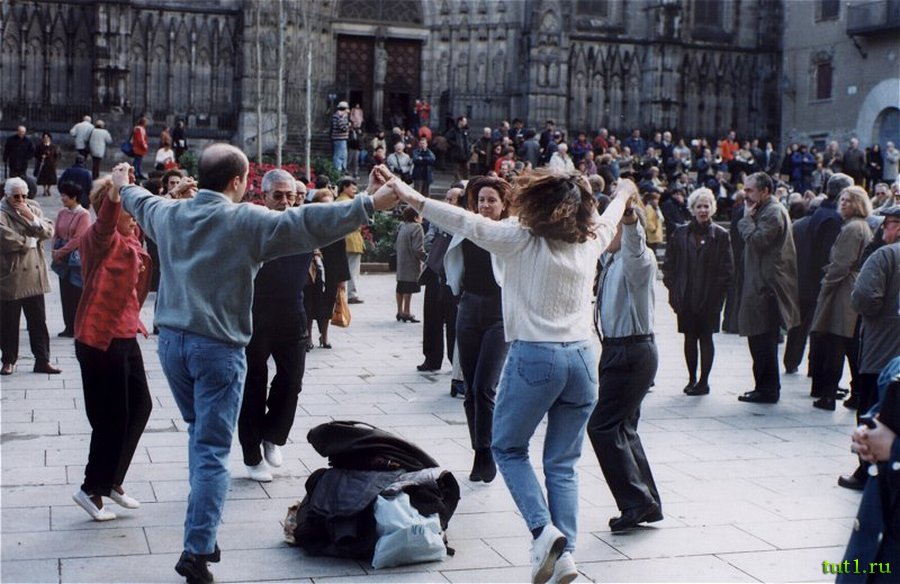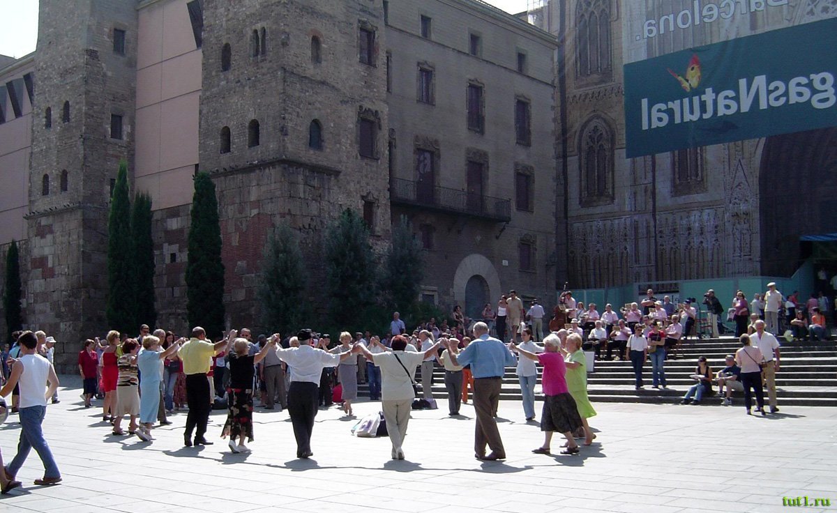Площадь перед собором Святого Креста и Святой Евлалии славится танцем сардана. Довольно часто под свист или звуки флейты незнакомцы берутся за руки и начинают медленный хоровод, присоединяя всё больше людей. Этот медленный спокойный танец символизирует общность каталонского народа. Замкнутый круг символизирует объединение, в сравнении с внешним миром, однако, если незнакомец приходит в круг ― его с радостью принимают. Каталонцы приветствуют каждого, кто хочет их понять.