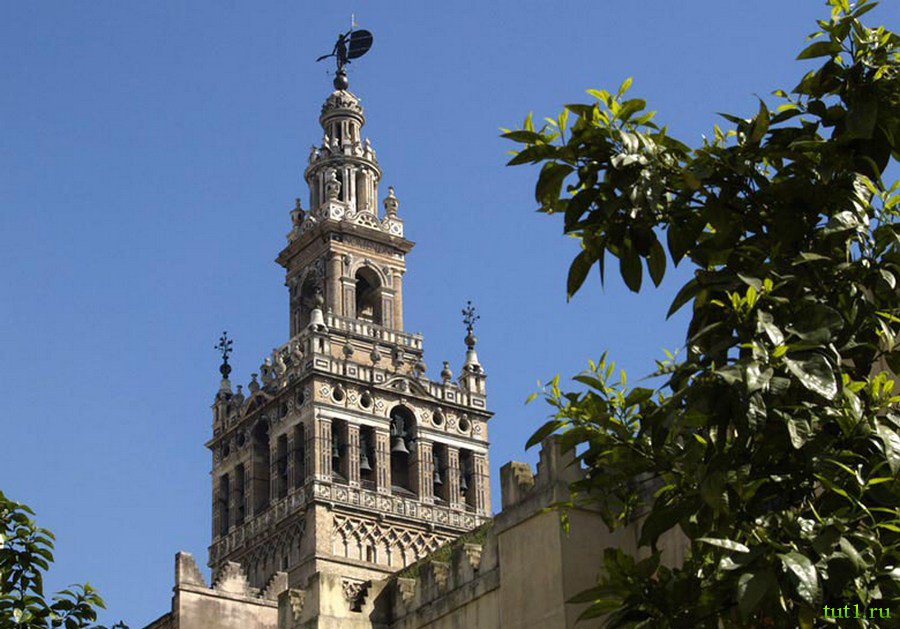 На территории собора располагается Хиральда ― одно из прекраснейших зданий Севильи. Колокольня, достигающая в высоту 114 метров, вмещает в себе 22 колокола. Больше всего потрясает конструкция внутренней башни ― она состоит из 35-ти пандусов, слегка наклоненных и достаточно широких чтобы по ним могли проехать два стражника на конях. Гармония первоначальной постройки была, в некоторой степени, нарушена пристройкой огромных балконов в стиле ренессанса и четырьмя реставрациями колокольни, пострадавшей от землетрясения в середине XVI века.