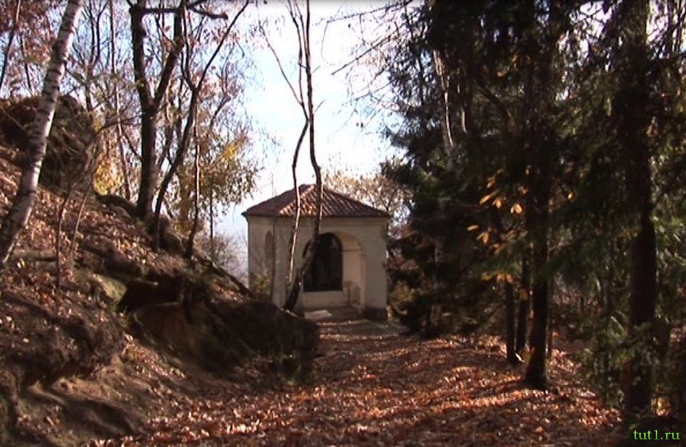 Тринадцать часовен посвящено мистериям Розарии, они стоят вдоль дороги, петляющей по лесам. Часовни расположены на определенном расстоянии друг от друга и в них находятся особенные украшения, которые, зачастую, идентичны. Эта "священная гора" была построена поверх древней церкви и бенедиктинского монастыря, строительство которого датируется XI веком.