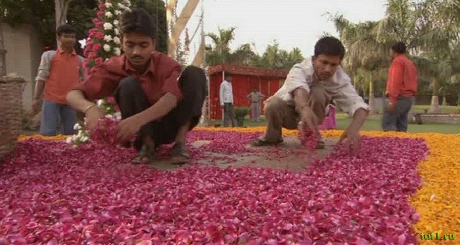 На следующий день проводится церемония бракосочетания. С самого утра начинаются приготовления к этому торжественному моменту. На нитки нанизывают тысячи цветков жасмина и развешивают гирлянды, кроме того, расставляют сотни орхидей. Во всём этом задействованы 50 цветочников! Украшения для брачной ночи, цветы, подвозят в последнюю минуту, чтобы сохранить их свежесть.