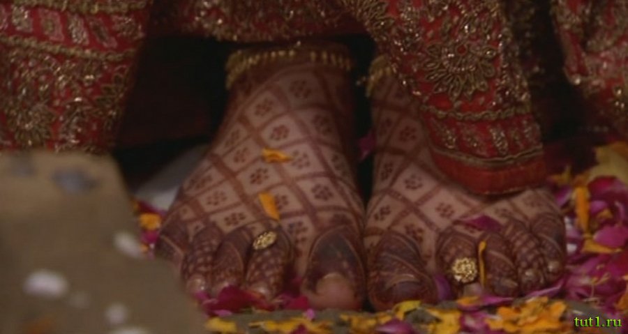 Наконец, по традиции, которой 3 тысячи лет, жених наносит на пробор невесты красную краску. Это, а так же кольца на пальцах ног, и обозначает замужество.
