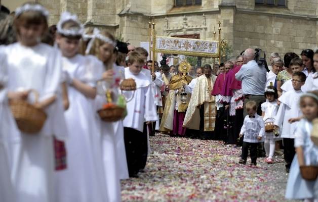 Праздник Тела Христова — очень древний праздник, которые отмечается ежегодно в четверг после Троицы. В далёком 1263-м году чешский священник Пьетро вдруг испытал серьёзнейшие сомнения: "А верно ли, что Христос оставил своё тело и кровь верующим?" Став пилигримом, он отправился из Праги сначала в Рим, а затем в Умбрию. В одном городке он решил отслужить мессу у могилы святой Кристины. И когда он разломил просвирку (маленький круглый хлебец) — из неё брызнула кровь на его костюм. Это одеяние, пропитанное кровью, он отнес папе римскому. Тот ему поверил и в 1264-м году учредил праздник Тела Христова. А главным городом для его проведения был назначен город Орвието.
