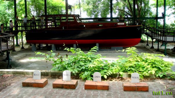 Во дворе огромной усадьбы установлена яхта "Пилар", которая была свидетелем многих приключений своего владельца. На ней писатель уходил в море на рыбалку, где охотился на марлинов. В саду виллы Финка Вихия расположен бассейн и 4 небольшие могилы с любимыми охотничьими собаками Хемингуэя.