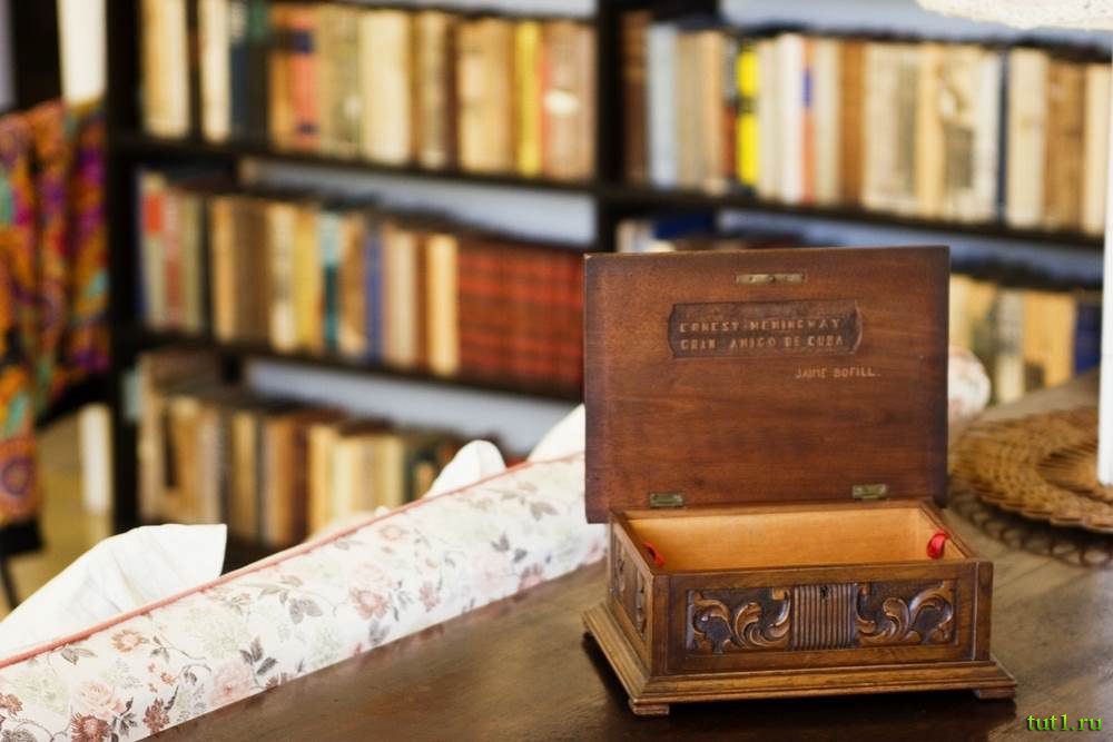 На книжных полках расположены разные экспонаты, среди которых подарки от друзей и поклонников. Когда писатель уезжал — он оставил много личных вещей и большую библиотеку с шестью тысячами книг. Он знал, что никогда уже не вернется сюда. В своём доме в штате Айдахо, он застрелился. Его смерть до сих пор вызывает множество предположений и вопросов, окутанных разными тайнами. Кто-то думает, что причиной всему была неизлечимая болезнь, или кризис личной жизни, кто-то считает, что писатель не пожелал старости.
