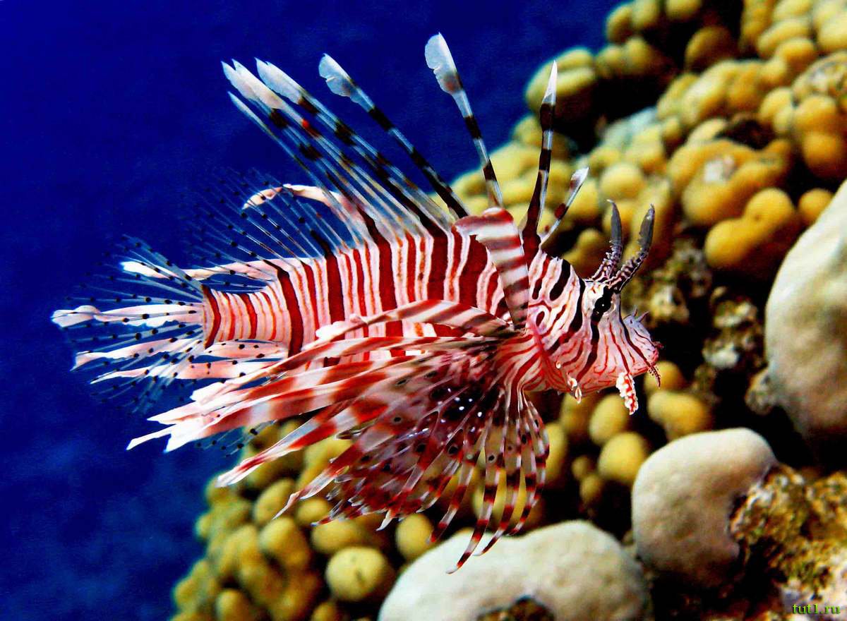 Крылатка, или как её еще называют рыба-лев или рыба-зебра, покрыта острыми иглами, выделяющими яд. Взрослого человека он не убьет, но рану будут очень долго болеть.