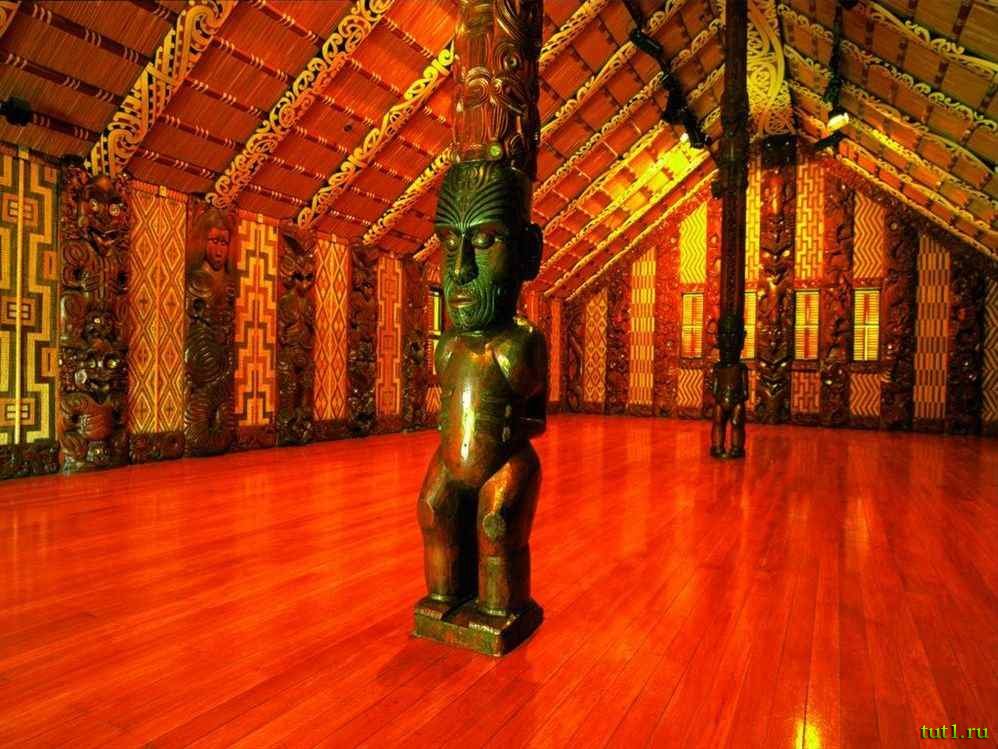 Люди маори приплыли в Новую Зеландию из Полинезии около тысячи лет назад в поисках новых земель, на которых можно поселиться. В музее в городе Вайтанги тщательно сохраняют предметы их материальной культуры — украшенный искусной резьбой дом или самое большое каноэ для военных набегов. Они представляют собой лучшие образцы искусства этого древнего народа. Оригинальная и живописная культура маори — одна из самых привлекательных для туристов этой страны.