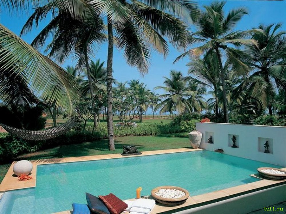Отель Taj Exotica Goa 5* ― один из лучших отелей всего Гоа. Этот отель более элитный, нежели остальные гостиницы, поскольку он может предложить Вам уединение. Отель Taj Exotica расположен в южном Гоа. Пляжи здесь лучше чем в северном Гоа — они девственны. Здесь нетронутый серебристый песок, ведь люди появились здесь не так давно. Ранее это место было неизвестным, потому что оно было неприступным и застройщики не могли добраться до этих берегов.