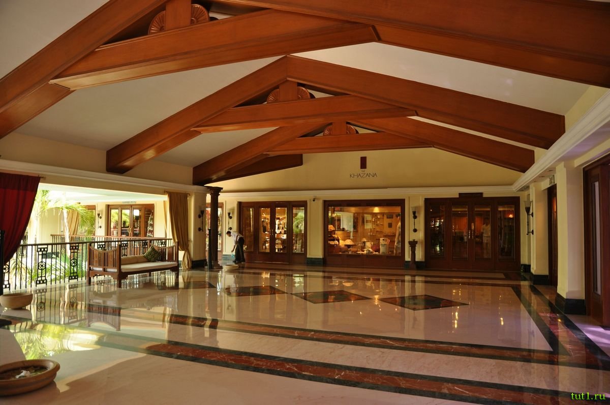 Холл отеля Taj Exotica занимает около 2-х тысяч квадратных метров. На сегодня, это самый большой холл в Индии. Огромный холл сделан в стиле португальского особняка. На территории отеля есть две небольшие площадки для гольфа на 9 лунок, чтобы посетители отеля проводили больше времени на зеленых лужайках и наслаждались прекрасными садами с ухоженными экзотическими растениями. Кроме того, есть спа в традициях аюрведы (нетрадиционной медицины), и не забывайте про йогу, ведь именно Индия подарила её миру.