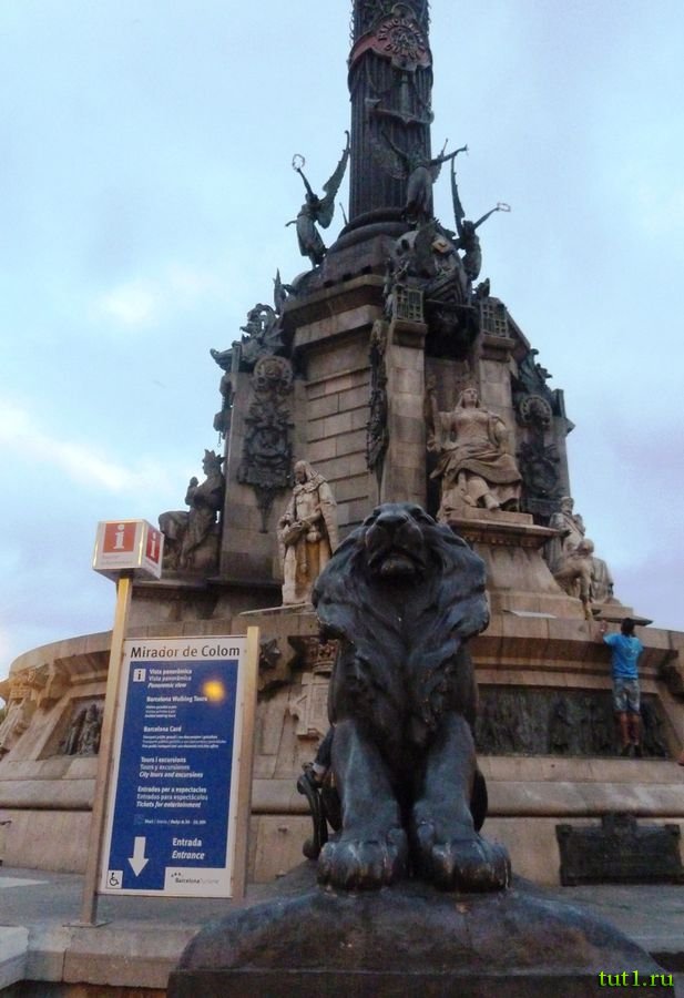 Внутри колонны располагается лифт, так как для ступеней оказалось недостаточно места. На этом лифте можно подняться на смотровую площадку, которая находится внутри шара, на котором стоит Колумб. Вид на город, со смотровой площадки, просто захватывает дух.
