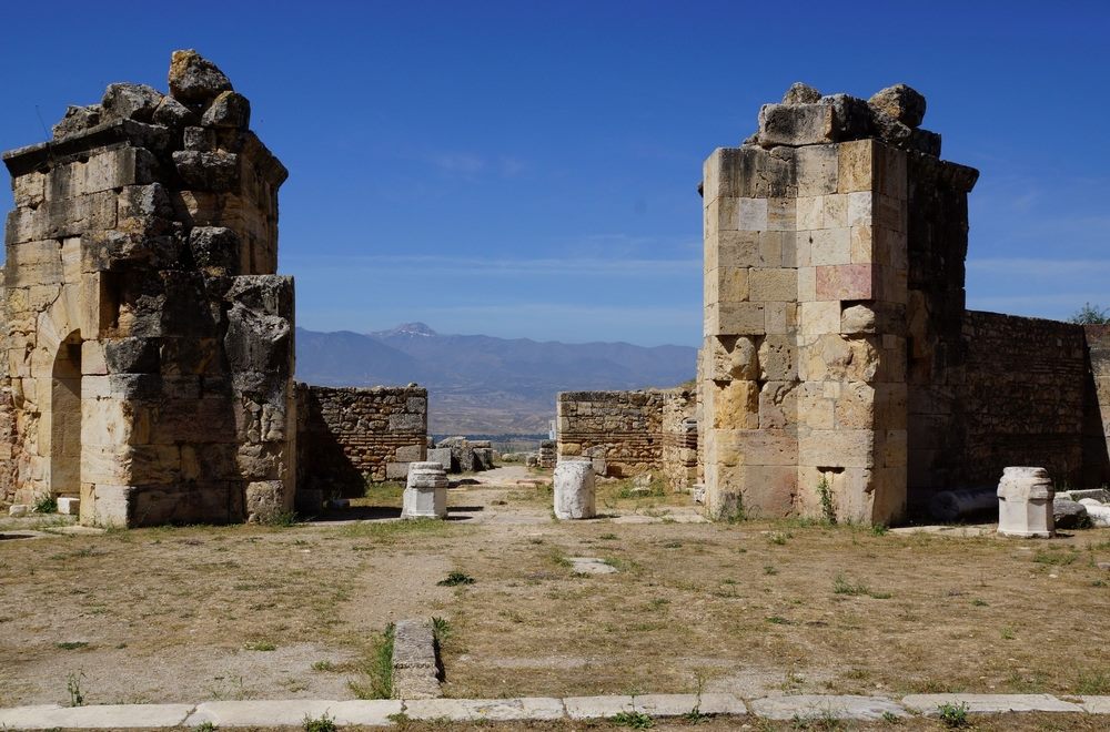 Привлекательный курорт манил жителей Древней Эллады. Зная о целительных свойствах воды местных термальных источников, они благоустроили здесь город с названием Иераполис. Молва о местности разнеслась во все концы Азии, сам же город превратился в настоящий лечебный центр. Однако из-за многочисленных землетрясений большинство античных сооружений было утрачено. Остались от них лишь развалины храма Аполлона, частично сохранившийся амфитеатр и врата Домициана.