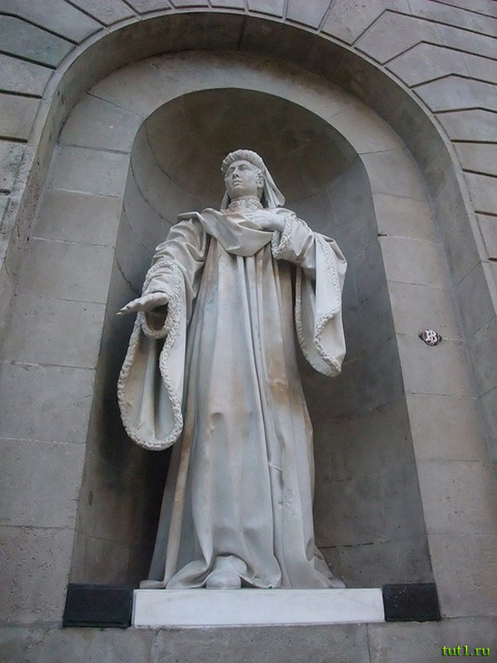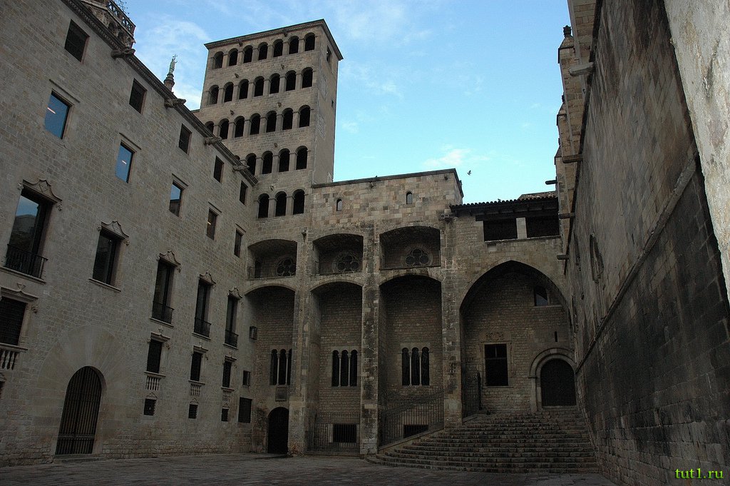 Королевский дворец в Барселоне был построен между XI и XVI веками. Он включает в себя римские, готические и элементы ренессанса. Монументальный дизайн фасада отражает вкус пап Авиньона. Слева от входа во дворец размещены три меньших входа, разделенные окнами, в римском стиле. Над тремя арками расположены три галереи с резными каменными розами. Строительством дворца управлял Питер Великий, а розы были идеей Питера IV ― короля Арагона.