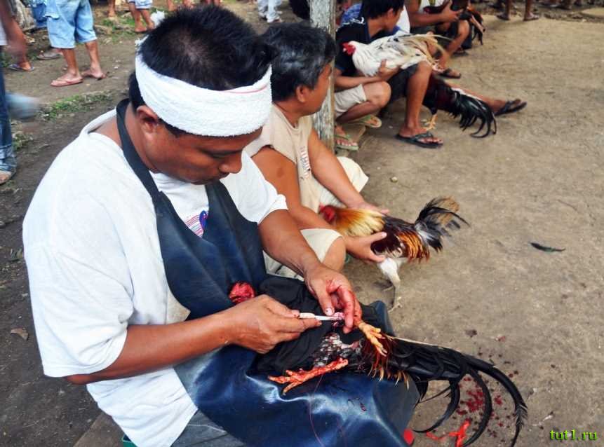 А на случай легкого ранения помощь всегда наготове. Тех петухов, которые не сильно пострадали, в порядок приводят врачи. Петушиные доктора часто наследственны, их профессия передается из поколения в поколение.