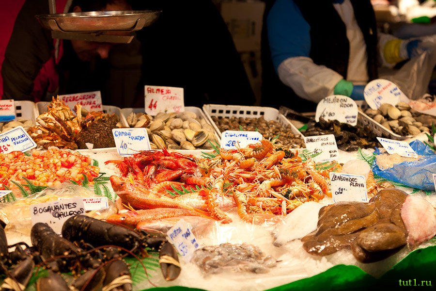 Стоит немного остановиться в рыбных рядах, представляющих собой круг, который состоит из прилавков. Здесь лежат горы из креветок разных размеров, устриц, морских гребешков, мидий, раков, омаров, крабов, улиток. Также в рыбных рядах вы найдете крупных рыбин с открытыми ртами, тунцов, сибасов и многое другое. Местные гиды называют рыбные ряды «сердцем» Бокерии.