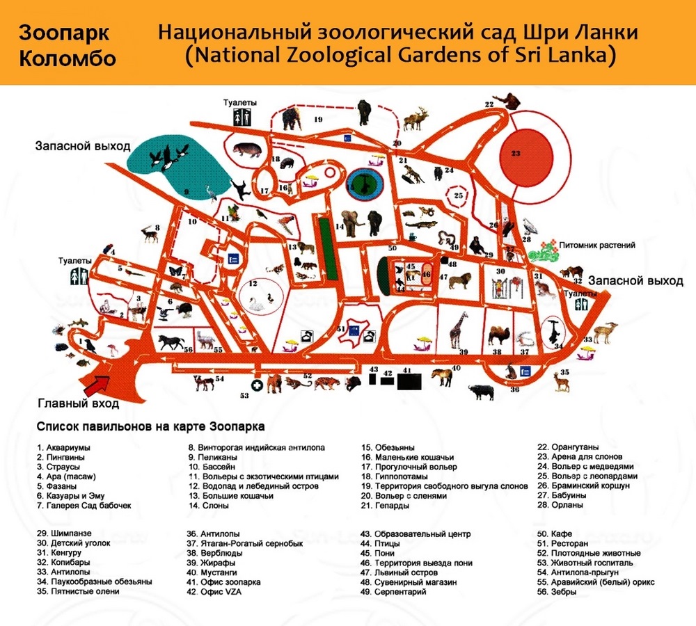 В зоопарке Коломбо два входа — один для местных, другой для иностранцев. На входе для местных всегда огромная очередь для желающих туда попасть, билеты стоят 70 рупий. На входе для иностранцев очереди практически нет, но билеты дороже почти вчетверо. Расплатиться можно банковской карточкой, в кассе есть терминалы.